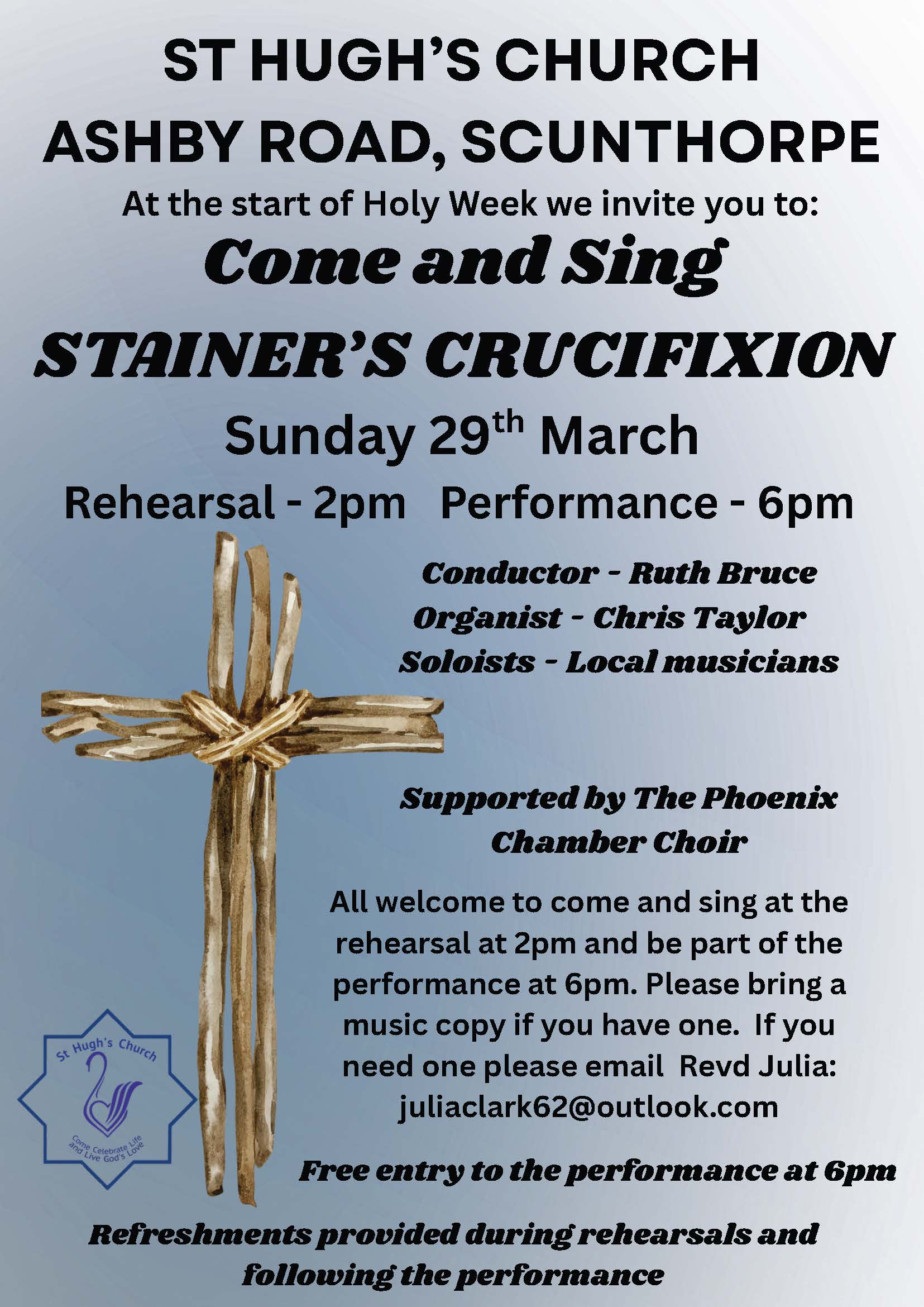Rehearsal: 2pm • Performance: 6pmSt Hugh’s Church, Ashby Road, Scunthorpe As Holy Week begins, all are…