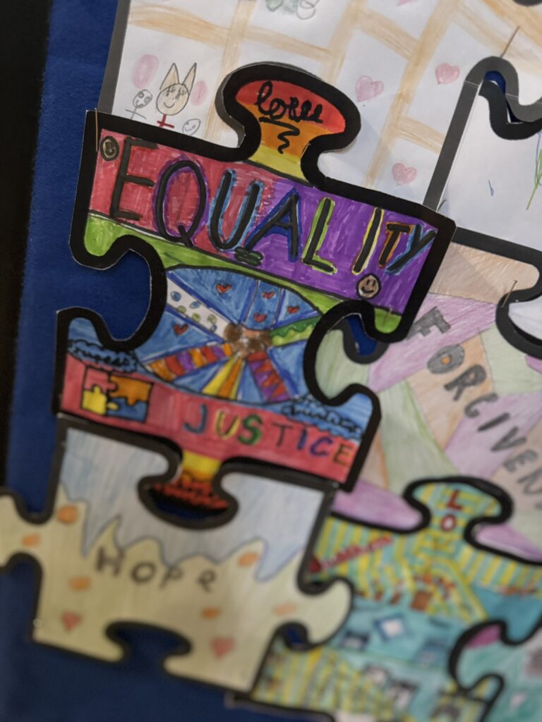 After the service, delicious Afro Caribbean food by Tashady was appreciated by all, and take-home reflection materials contained prayers written by children from St Nicholas’ school in Boston. There was a delightful display dedicated to racial justice for people to enjoy.