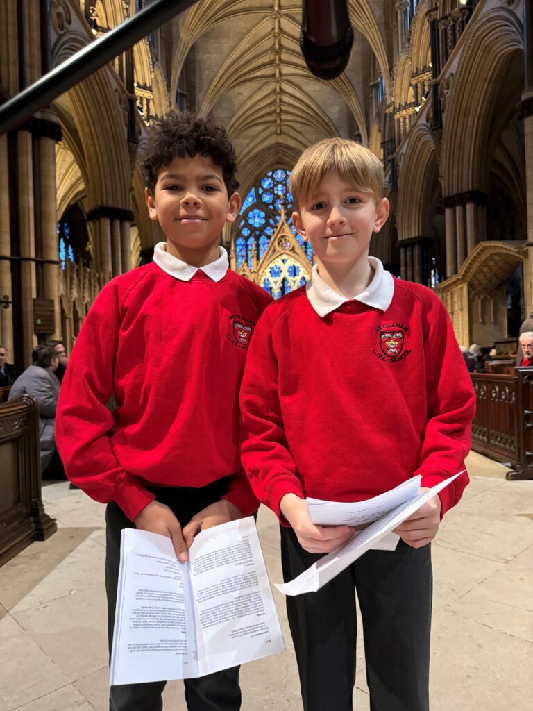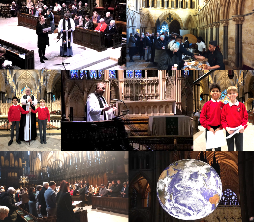 The service began with a recording of Go down Moses by the St Lawrence Academy schoolchildren prior to the opening processional hymn. The service, presided over by the Canon in Residence the Rev Dr Peter Neil, included psalms, canticles – among them A Canticle of Justice – and an anthem sung by the choir as is customary. Our prayers were led by the Rev Canon Sudharshan Sarvananthan, together with Halyna Romaniuk, a visitor from Ukraine, who led parts of the prayers in her native language. Children from Nettleham Junior School read prayers at the beginning and end of the service, and joined with the Bishop in holding his staff whilst leading the congregation in the Act of Commitment to Racial Justice and for the final blessing.